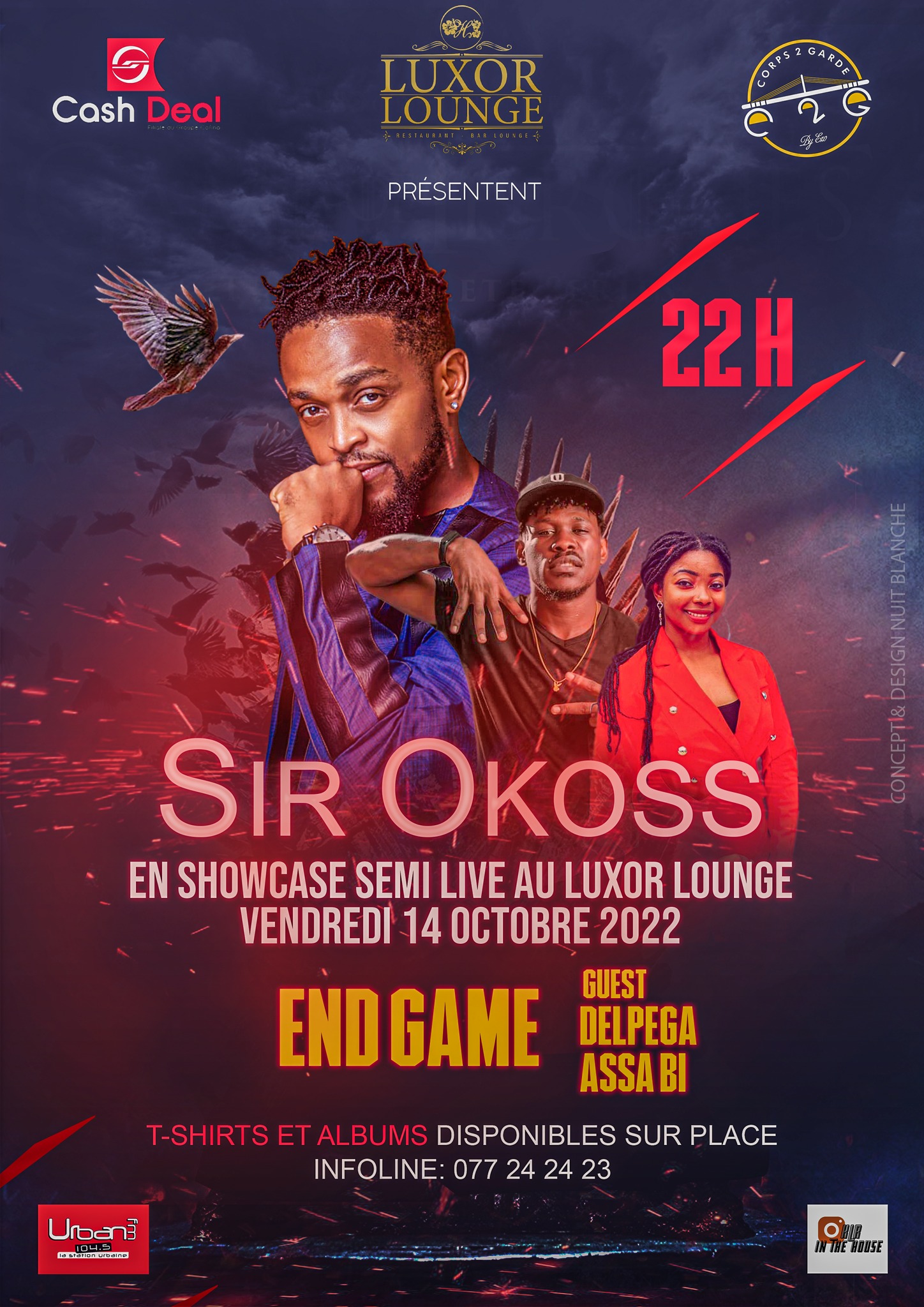 Pour le showcase « End Game », Sir Okoss sera accompagné de son acolyte du 241 Enigmatik, de DJ Fharell et des avants – premières: Delpéga et Assa Bi.